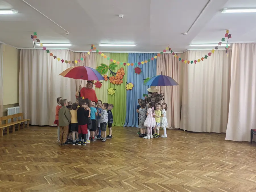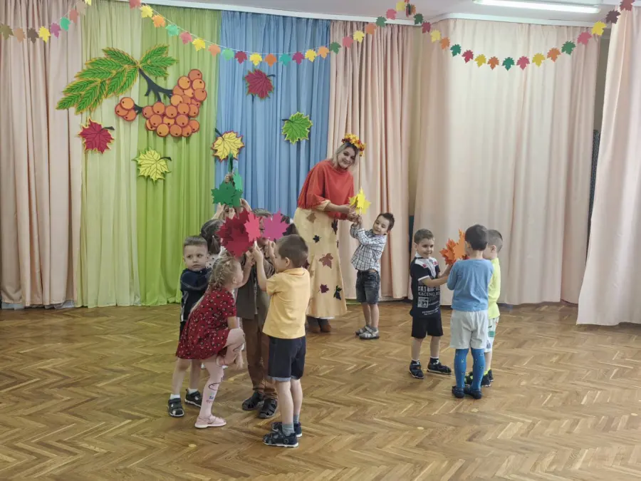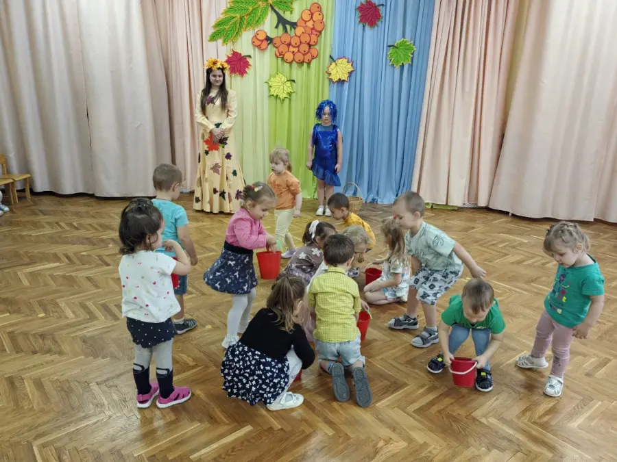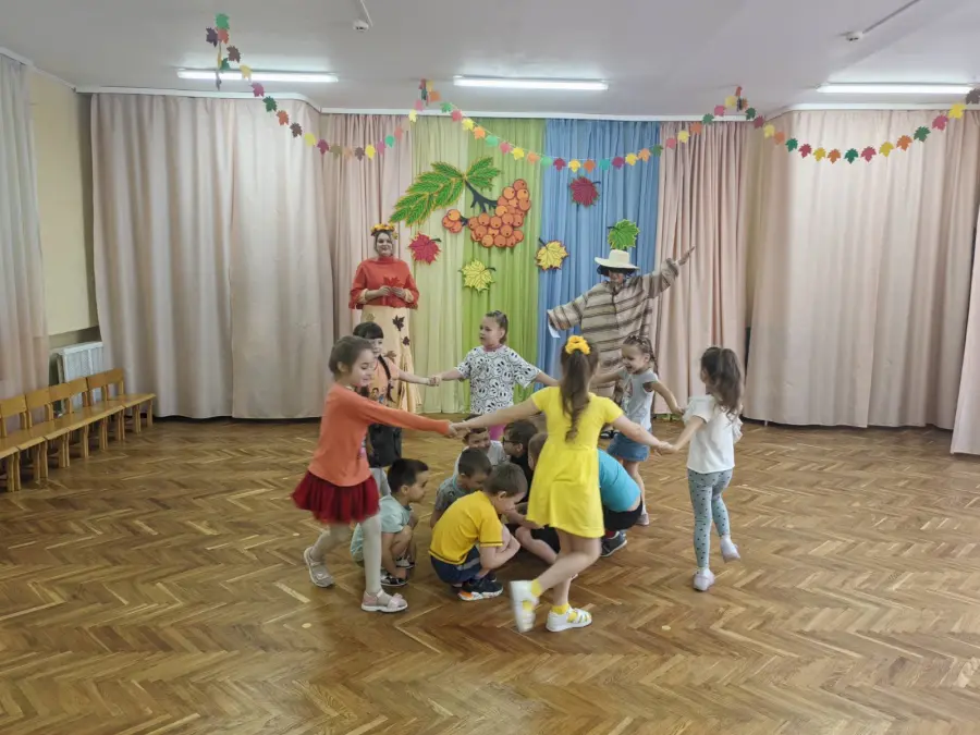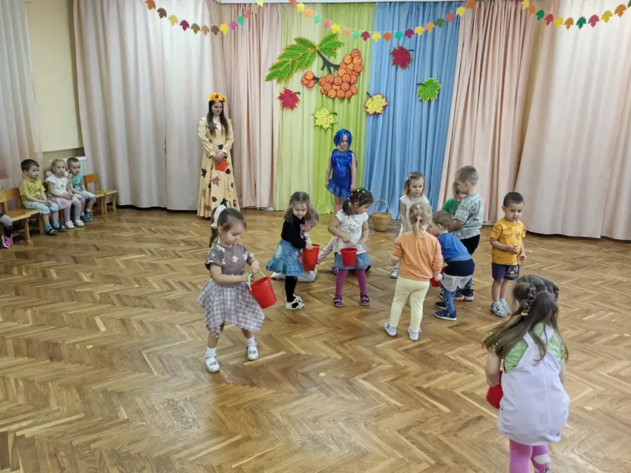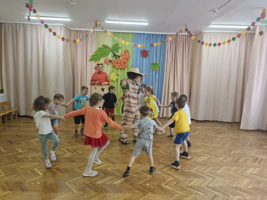 К ребятам приходила в гости красавица «Осень», «Пугало» и «Дождинка». Вместе с ними дети пели, танцевали и играли. Мероприятие было веселым, ярким и увлекательным. Воспитанники получили много позитивных эмоций. Ярким и запоминающимся был сюрпризный момент – корзина с угощениями для всех ребят – подарок щедрой Осени